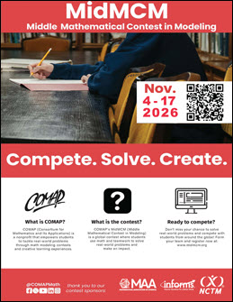 HiMCM & MidMCM offer students the opportunity to work as team members to engage in and improve their modeling problem solving, and writing skills. Teams apply mathematics to model, develop, and communicate a solution to a real-world problem.